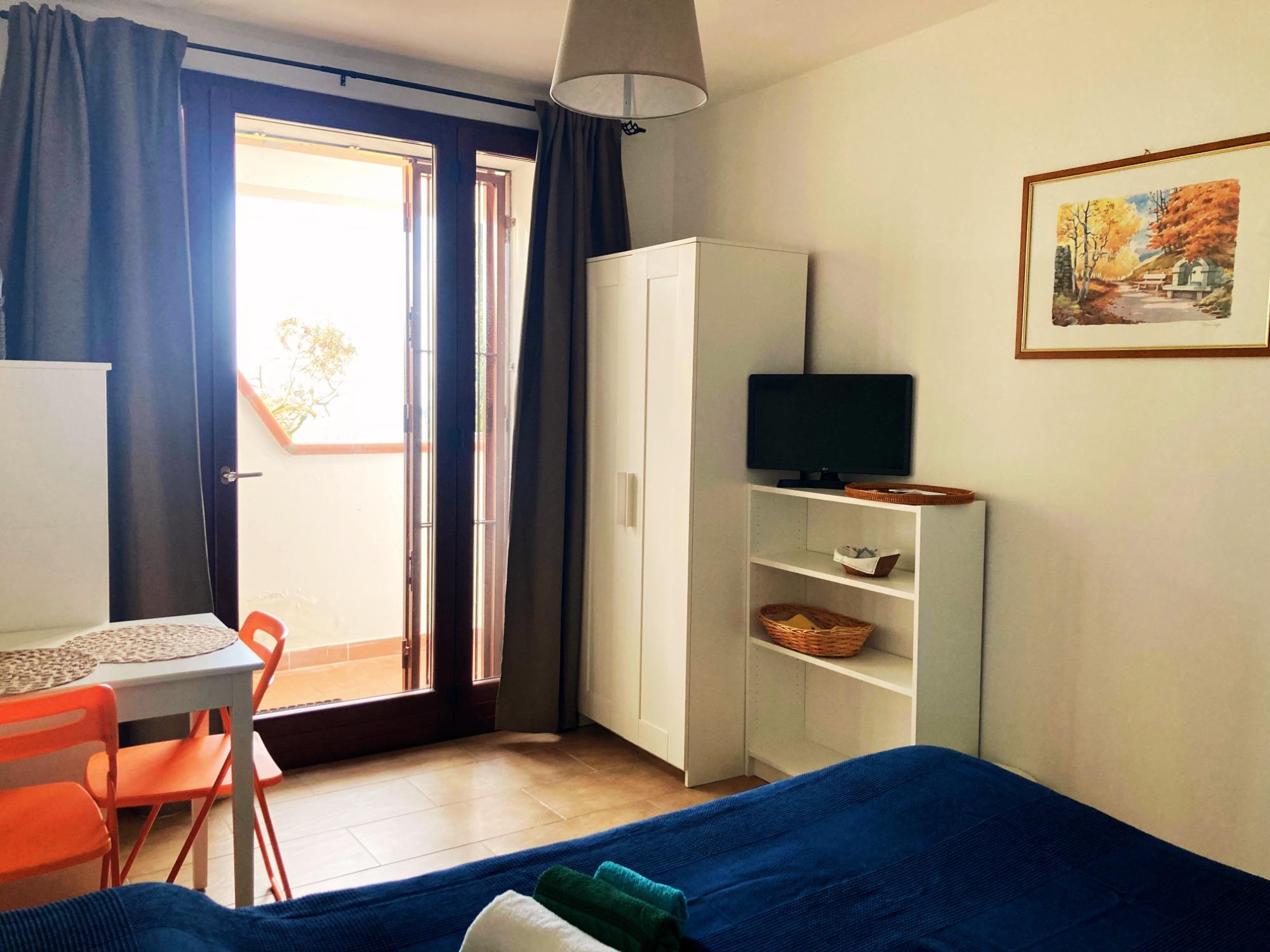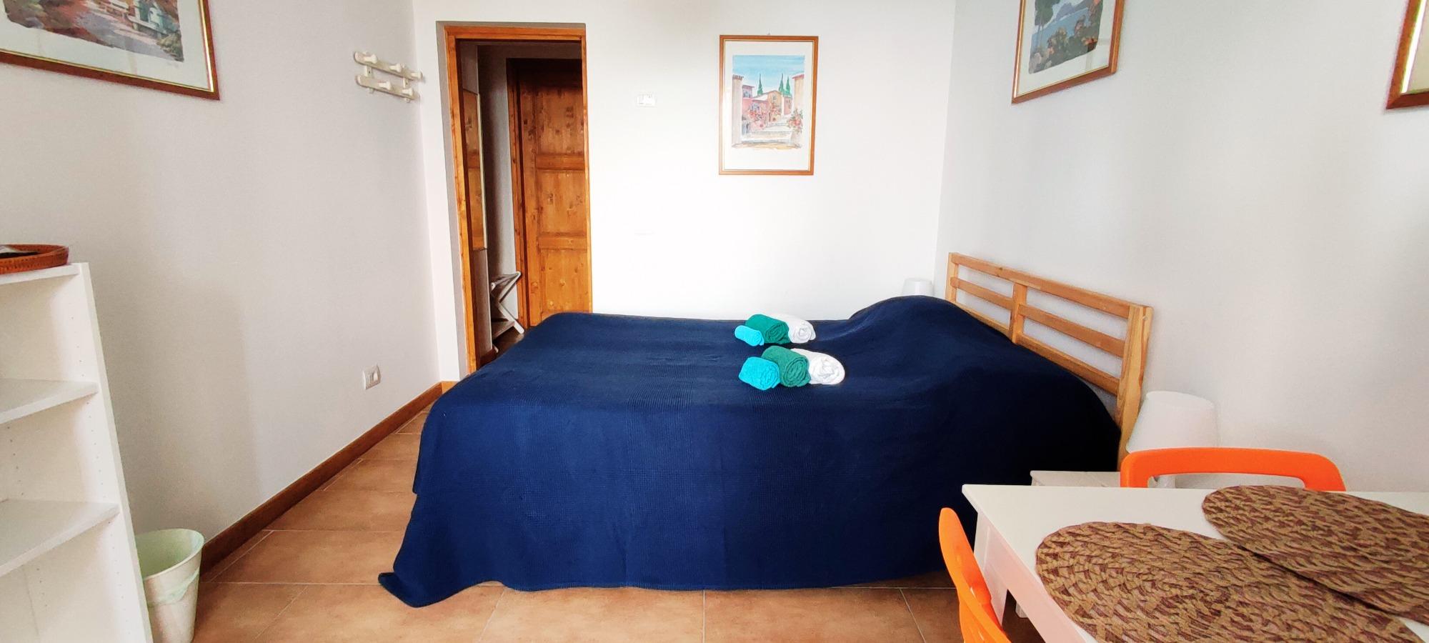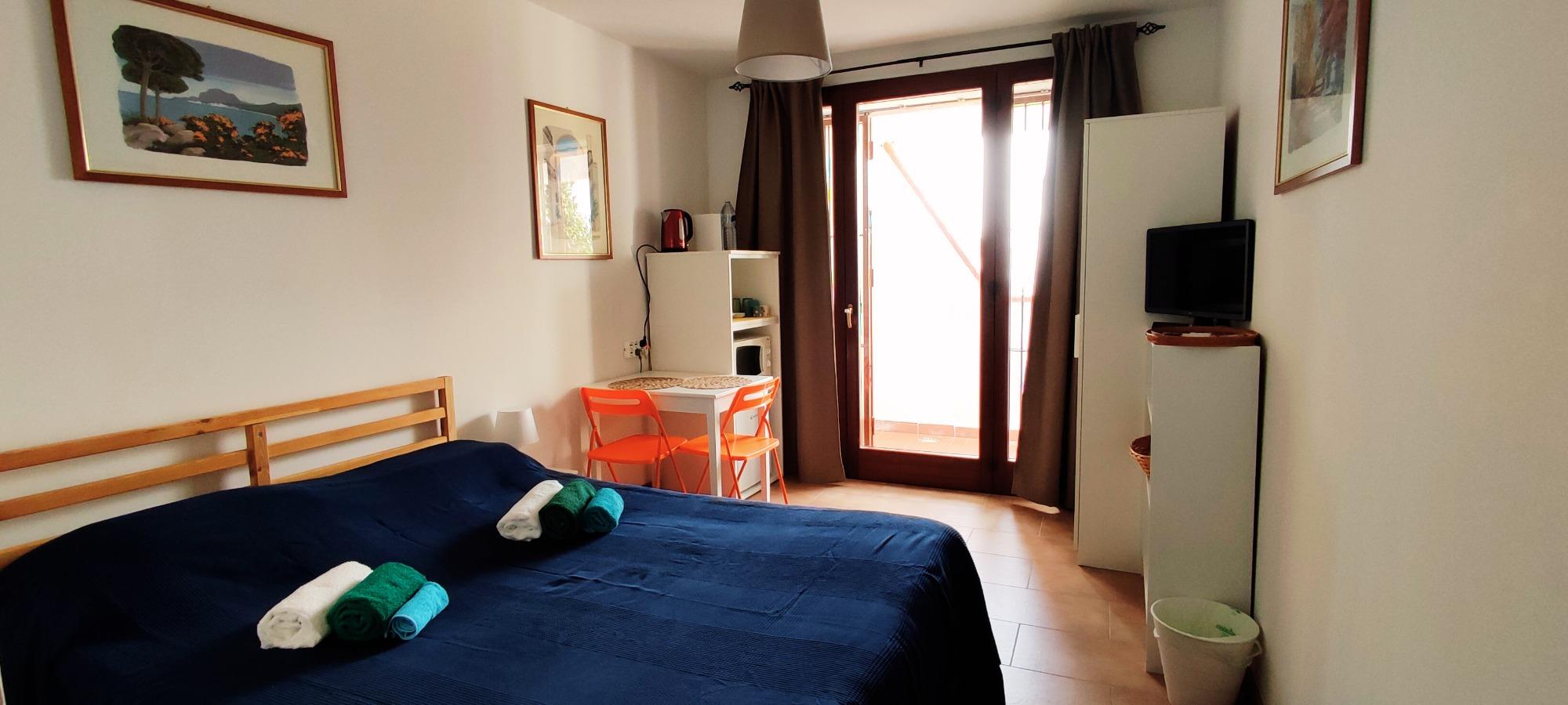 The apartment is divided into two areas: one part with a fully equipped kitchen, for exclusive use, with a table and chairs and one part with a wardrobe, a double bed, a single bed and a sofa bed.